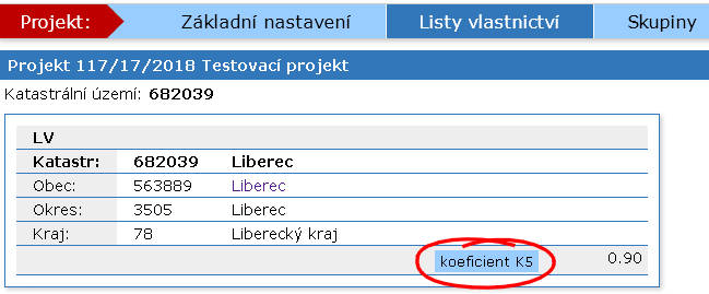 V kroku 'Listy vlastnictví' vyplníme kartu 'Koeficient K5'.