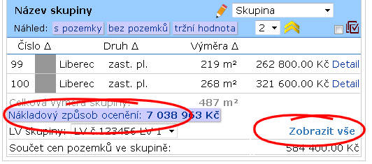 Obdobným způsobem lze připojit součásti k celé skupině pozemků.